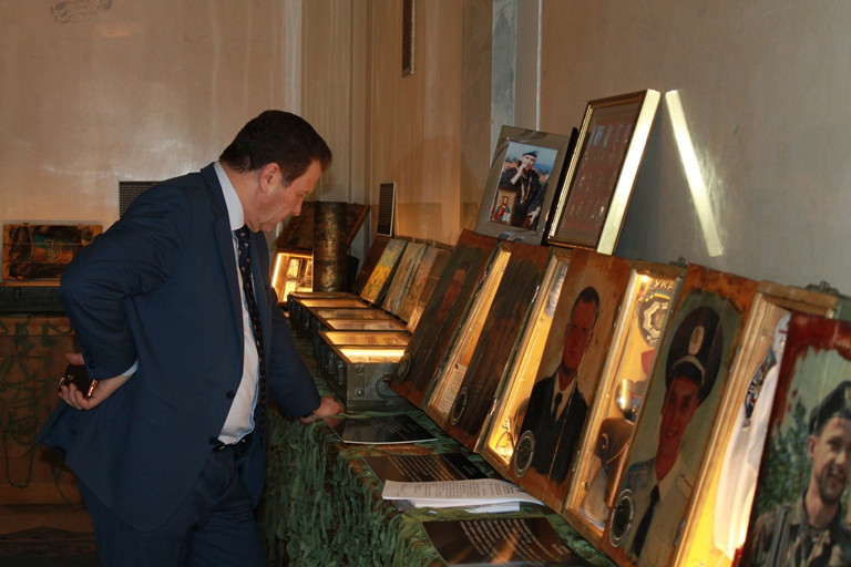 На виставці присутні родини загиблих бійців, представники Музею, волонтери.