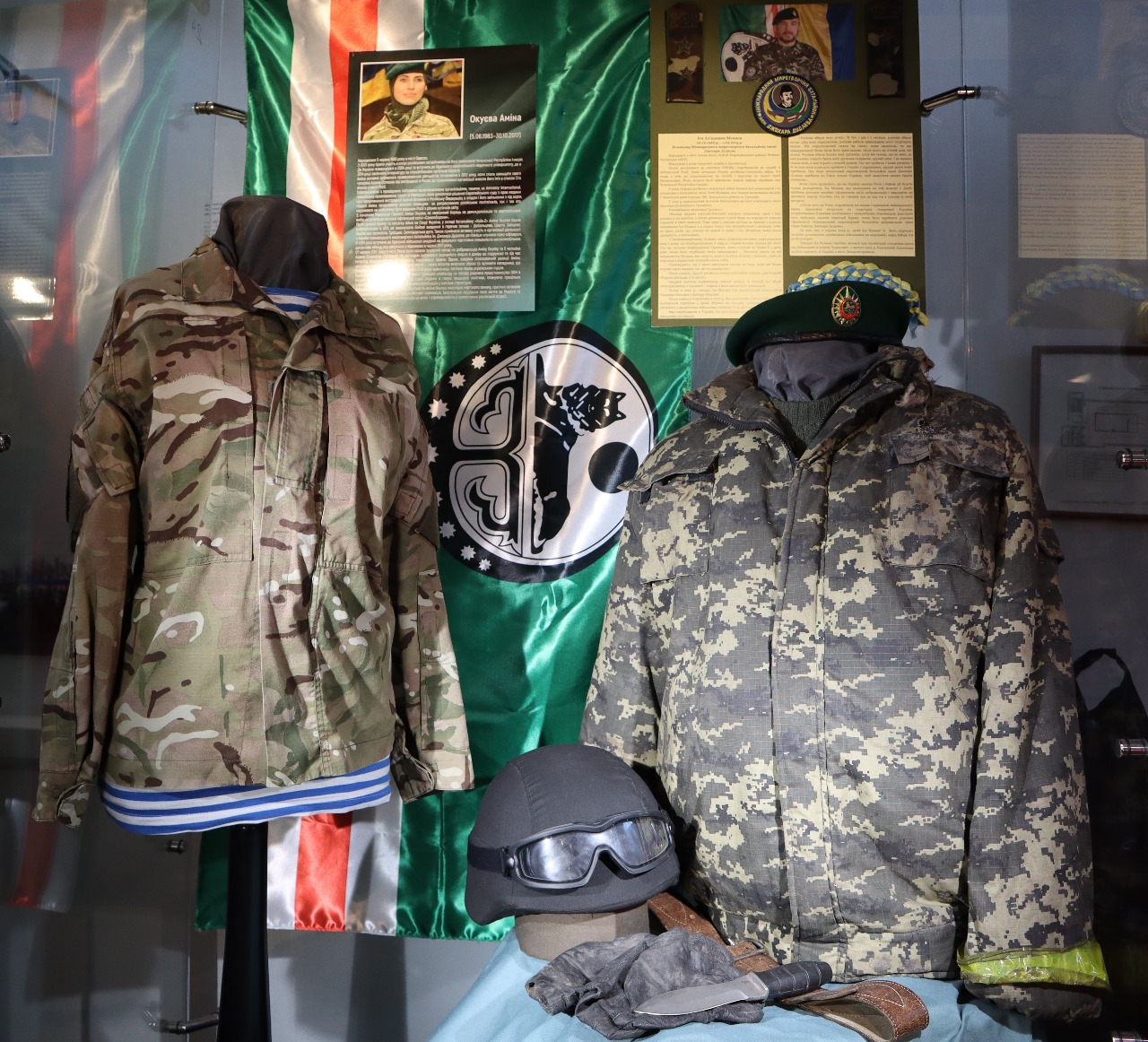 В експозиції Національного військово-історичного музею України присвяченій чеченським добровольцям розміщені їхні особисті речі. Ми пам’ятаємо кожного, хто відстоював та відстоює Незалежність нашої держави.